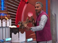 In Scream Machine, when Schwoz wreaks Charlotte's invention for the Gizmo Show he created a teleporter to replace it. The judges watch as the machine zaps Jasper. He vanishes and then reappears several feet away. Everyone is surprised and amazed by her invention and they begin to call newsgroups and other large organizations about her invention. They later realized it would lead to finding out that it would reveal Henry and Ray's secret identities. So they destroyed it by making a fight. In Saturday Night Lies, Schwoz created a new teleporter that could teleport other people and the user anywhere. but Lacey and her husband try to take it. However, when it was discovered that the second teleporter cannot transport two living beings at once, it was too late as Lacey and Rodger use the device and accidentally form a two-headed mismatch creature, and with no possible way for her and Roger to return in their original look.